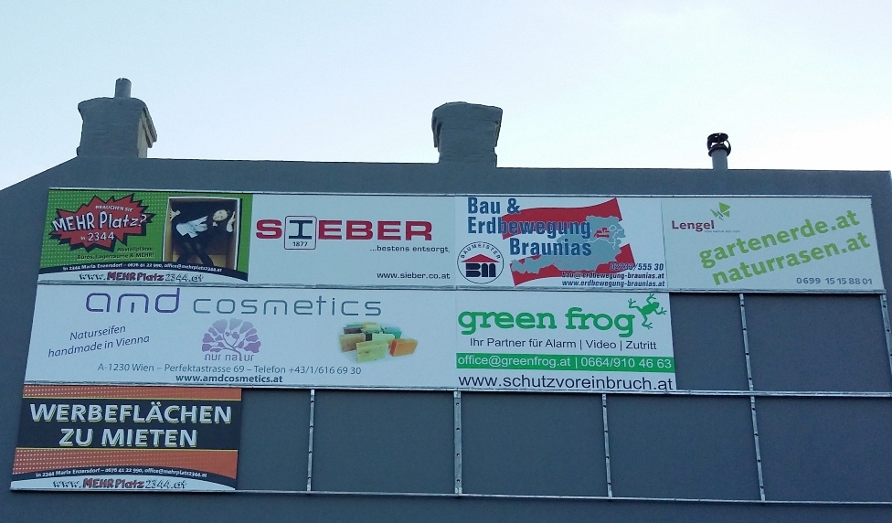 Werbeflächen ab 2m² (Standardmaß HxB 1m x 2m. Kombinationen möglich) mitten im Betriebsgebiet Maria Enzersdorf!